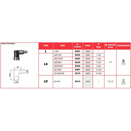 À utiliser en combinaison avec des câbles de bougie de 7 mm de diamètre